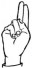 На ћирилици написано ИРЕНА ШВРАКА састоји се из 11 слова [?]. Исписано ћириличном једноручном азбуком за глувонеме: